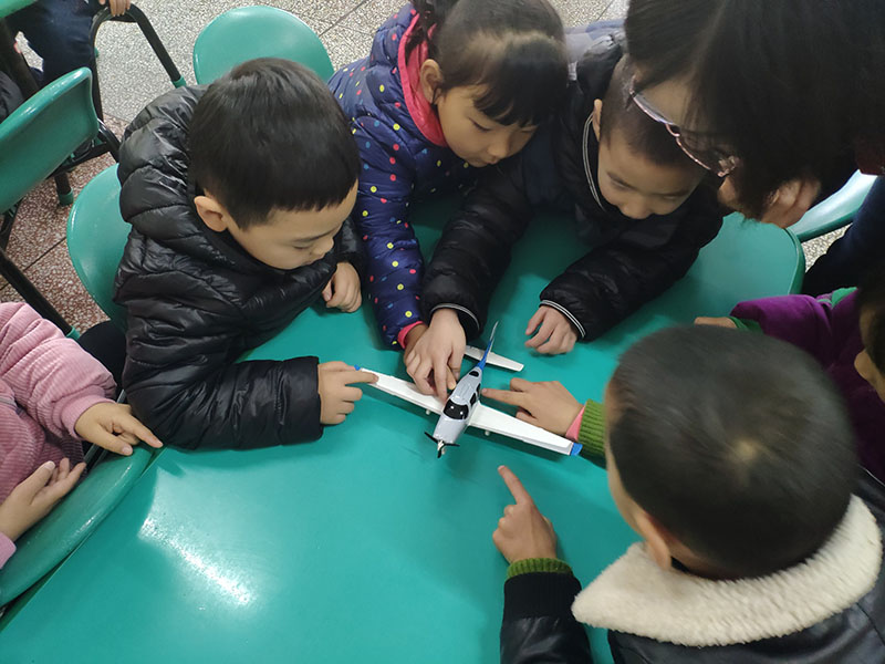 隨后科普人員拿出西銳飛機模型,向孩子們詳細講述了飛機結構、性能、用途等航空知識。介紹完后科普人員分組讓孩子們仔細觀摩飛機模型,并回答孩子們提出來的各類問題。