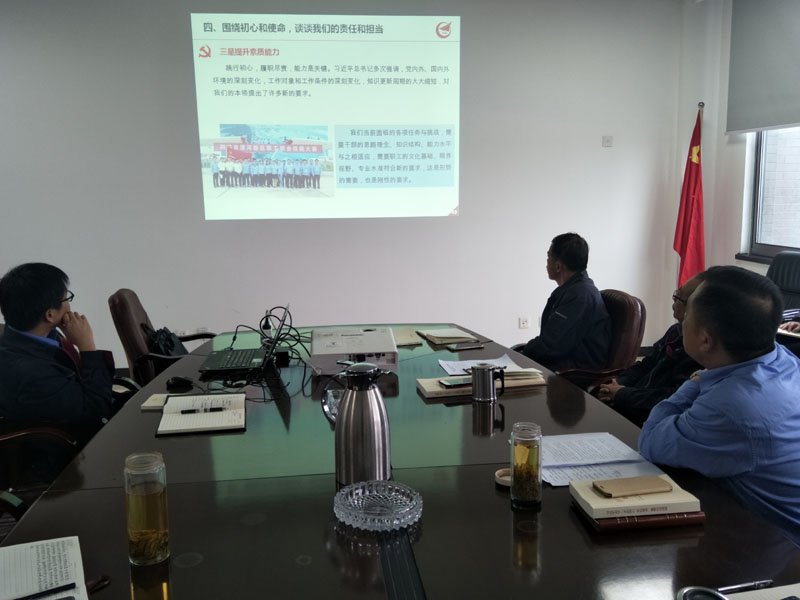 近日,根據(jù)公司黨支部“不忘初心、牢記使命”主題教育安排,公司領(lǐng)導(dǎo)班子成員分別到各部門開展調(diào)研座談;公司黨政主要領(lǐng)導(dǎo)結(jié)合學(xué)習(xí)、調(diào)研及聽取意見情況分別講授了專題黨課;全體黨員對照黨章黨規(guī)找差距檢視問題,推動(dòng)主題教育持續(xù)縱深開展。