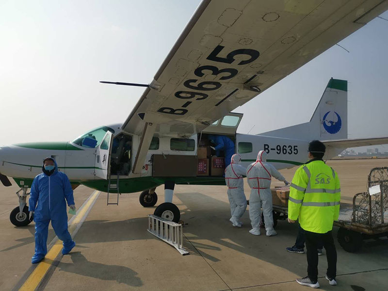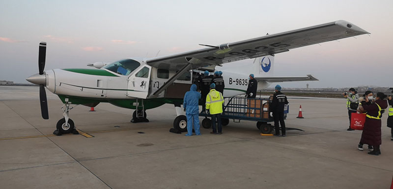 荊門(mén)通航9635機(jī)組執(zhí)行上海至襄陽(yáng)緊急防疫物資運(yùn)輸任務(wù)