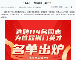 近日,荊門市首屆荊門英才名單公布,我公司盧慶新同志被選聘為“首屆荊門英才”(技能工匠類),聘期從2022年3月起至2025年2月止。據(jù)悉,全市共有114名各領(lǐng)域?qū)<壹寄苋瞬偶案黝悇?chuàng)新創(chuàng)業(yè)人才入選,涉及···